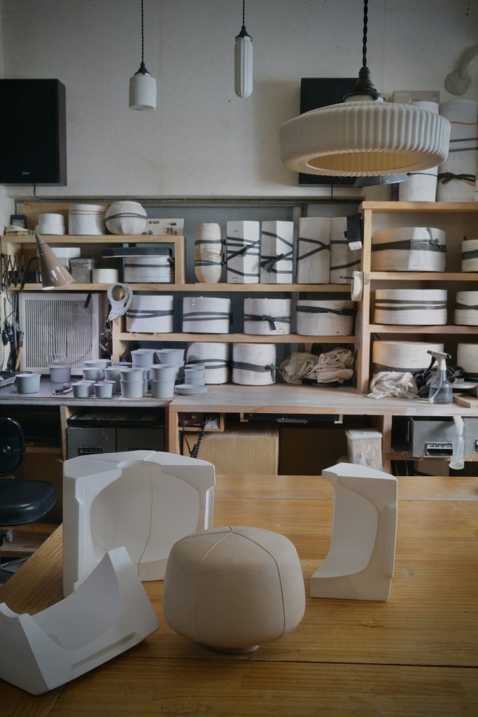 石膏型に泥漿を鋳込む成形方法は量産向けの効率的な手法という見方が主流のなか、実際に製作現場を目の当たりにすると、各工程における繊細な配慮が一つでも欠けると全てが無に帰すという、近道の無い物作りであることが判ります。